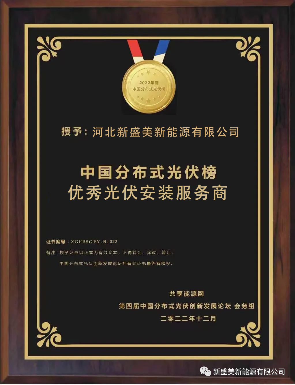新盛美獲得2022年度優(yōu)秀光伏安裝服務(wù)商
