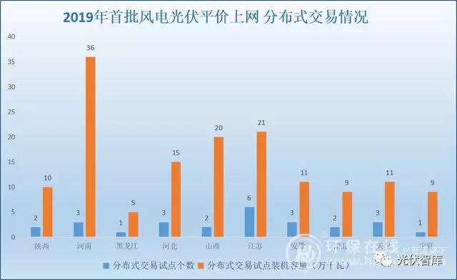 就分布式發(fā)電試點(diǎn)而言,2019年試點(diǎn)區(qū)域內(nèi)風(fēng)電、光伏發(fā)電交易升至26個(gè)。其中新增規(guī)模達(dá)147萬(wàn)千瓦,總量限額達(dá)165萬(wàn)千瓦。其中涉及湖北(天門市、荊門市)、河南(鶴壁市、禹州市、蘭考縣)、山西(運(yùn)城市、朔州市)、黑龍江(哈爾濱市)、天津、江蘇(蘇州市、常州市、鹽城市、海門市、江陰市、泰州市姜堰區(qū))、寧夏(寧東能源化工基地)、河北(保定市、邯鄲市、武安市)、陜西(榆林、渭南市)、安徽(池州市、銅陵市、馬鞍山市)。