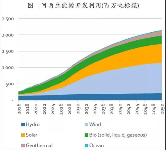 然而,根據(jù)國家可再生能源中心去年發(fā)布的《中國可再生能源展望 2018》的報告顯示,2020年中國化石能源消費總量將達到頂峰,2035年之前將穩(wěn)步下降,煤炭在發(fā)電和工業(yè)部門的能源消費比例會持續(xù)縮減。下個十年中國將迎來光伏與風電大規(guī)模建設(shè)高峰。新增光伏裝機量約80-160 GW/年,新增風電裝機量約70-140 GW/年。