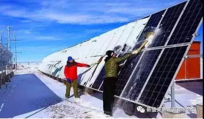 4、不要等到積雪很長時間再去清掃,溫度過低結(jié)冰的話對組件發(fā)電量也有損傷。