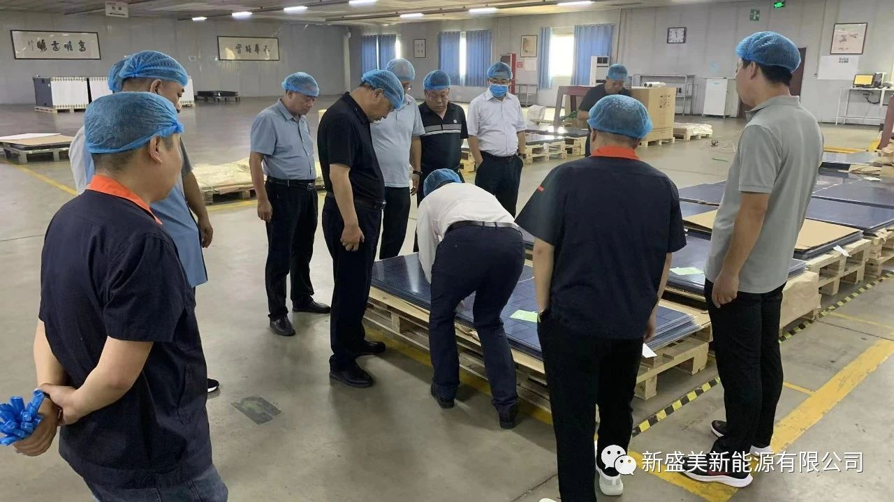 卓資縣縣委書記王大河一行人參加了生產(chǎn)部、產(chǎn)品質(zhì)檢部、組件成品放置部,新盛美副總經(jīng)理張煦先后介紹了組件的生產(chǎn)所需材料、生產(chǎn)流程、質(zhì)檢流程等。