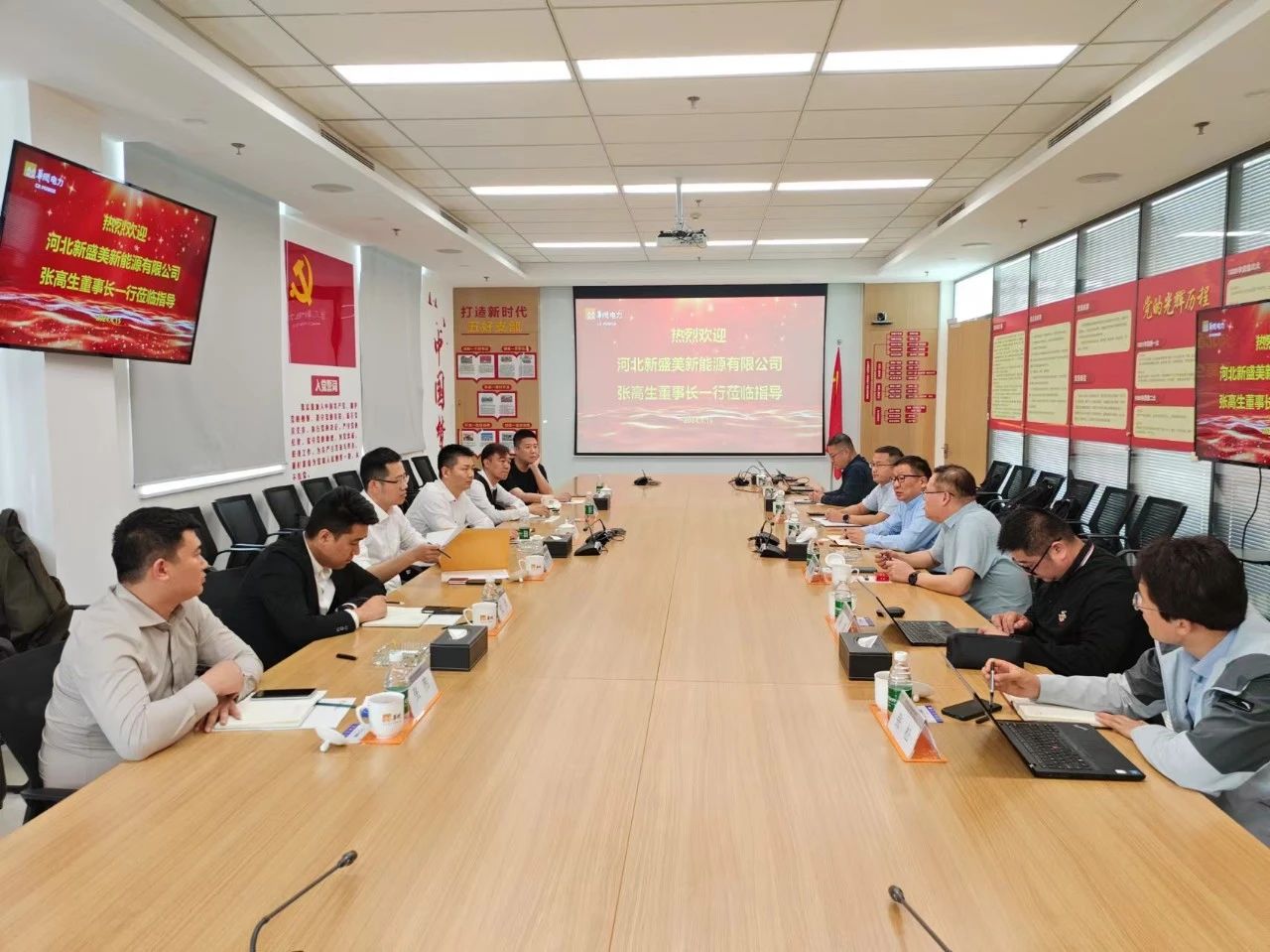 庚孝衛(wèi)對張高生一行的到來表示熱烈歡迎,并介紹了公司的整體經營情況、新能源業(yè)務開展和集中監(jiān)控情況以及電力保供情況。他表示,華潤電力始終堅持推動生產生活方式向綠色轉型,圍繞“碳達峰、碳中和”目標,不斷擴大在風電、光伏發(fā)電、火電、水電、分布式能源、售電、綜合能源服務、煤炭等領域的投資、建設及運營優(yōu)勢。他還表示公司近年來牢牢抓住“十四五”發(fā)展機遇,加快新能源業(yè)務開發(fā)布局,此次新盛美的到訪將是一次很好的契機,他希望雙方能夠依托資源優(yōu)勢、政策優(yōu)勢,進一步整合資源,加強交流合作,實現(xiàn)互利共贏。